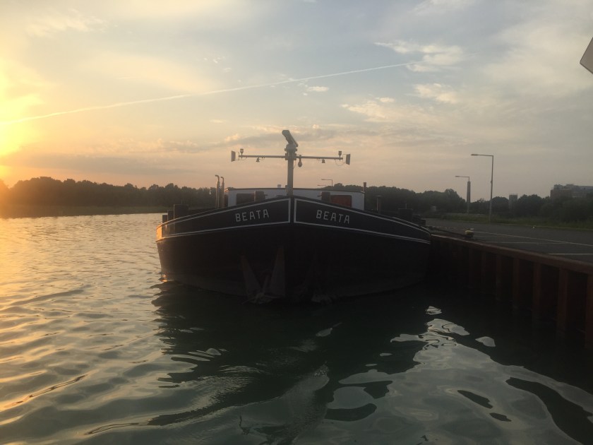 På kvällen tittar skepparen på flodpråmen Beata förbi och vi pratar om hur det är att arbeta på kanalerna, vart vi skall åka och olika alternativa rutter till Frankrike. Det lutar allt mer åt alternativet Holland-Belgien i stället för Mosel på grund av strömmen i Rehn. Det blir många fler slussar, men att jobba sig mot 4knops ström när båten maxar 6knop i fyra dagar känns inte lockande.