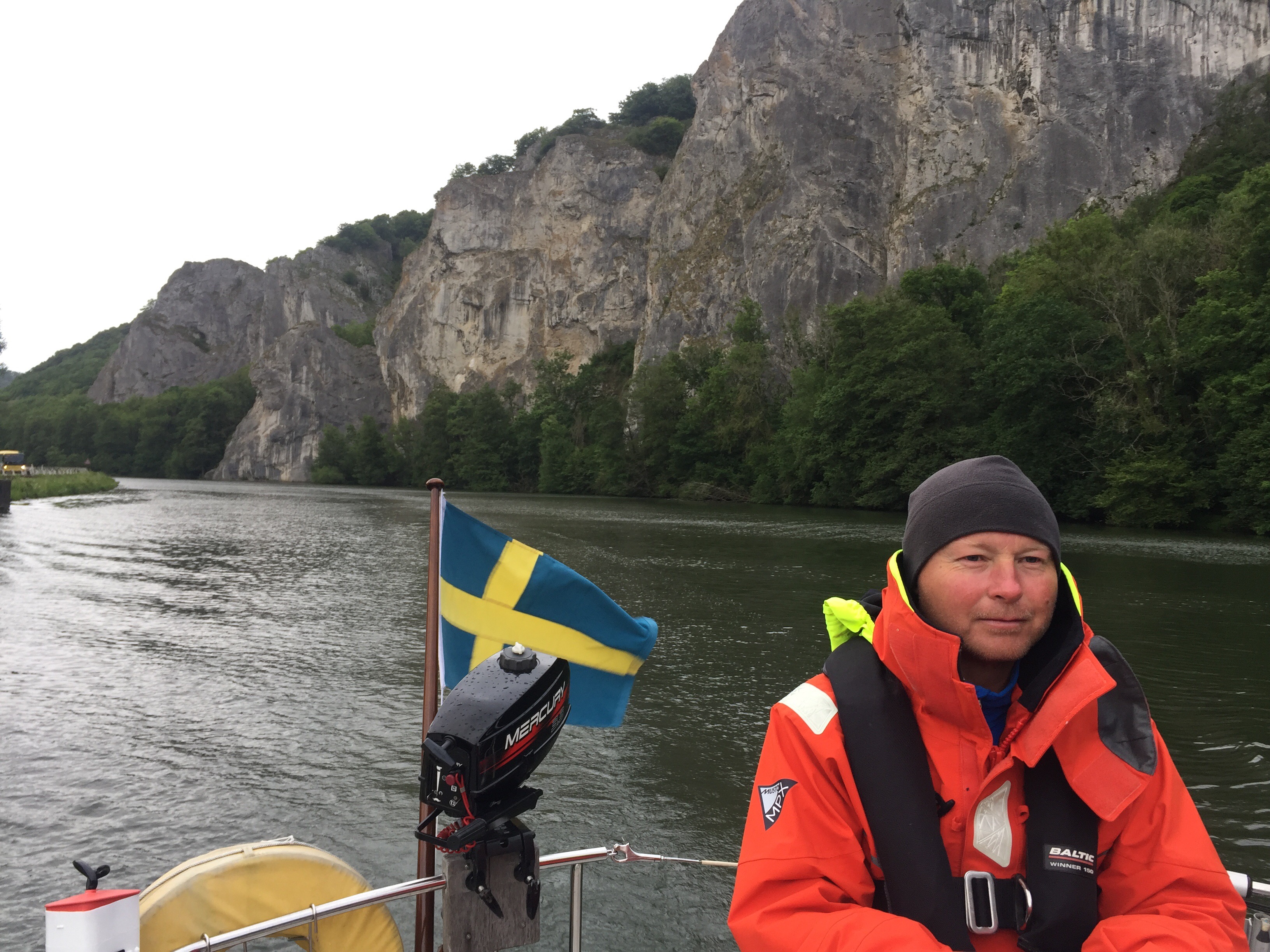 Ingen av oss pratar franska så vi var lite nervösa för att anlopa slussen på radio. J provade med samma engelska anrop som fungerat utmärkt i Holland och fick en störtflod på franska tillbaka. När vi inte omedelbart svarade kom ett irriterat ”allo, montant e avalant?” i radion. Vi rafsade frenetiskt i våra papper där vi hade franska båtglosor. Vi lyckades svara ”montant” och tydligen med acceptabelt uttal så vi fick slussa upp.