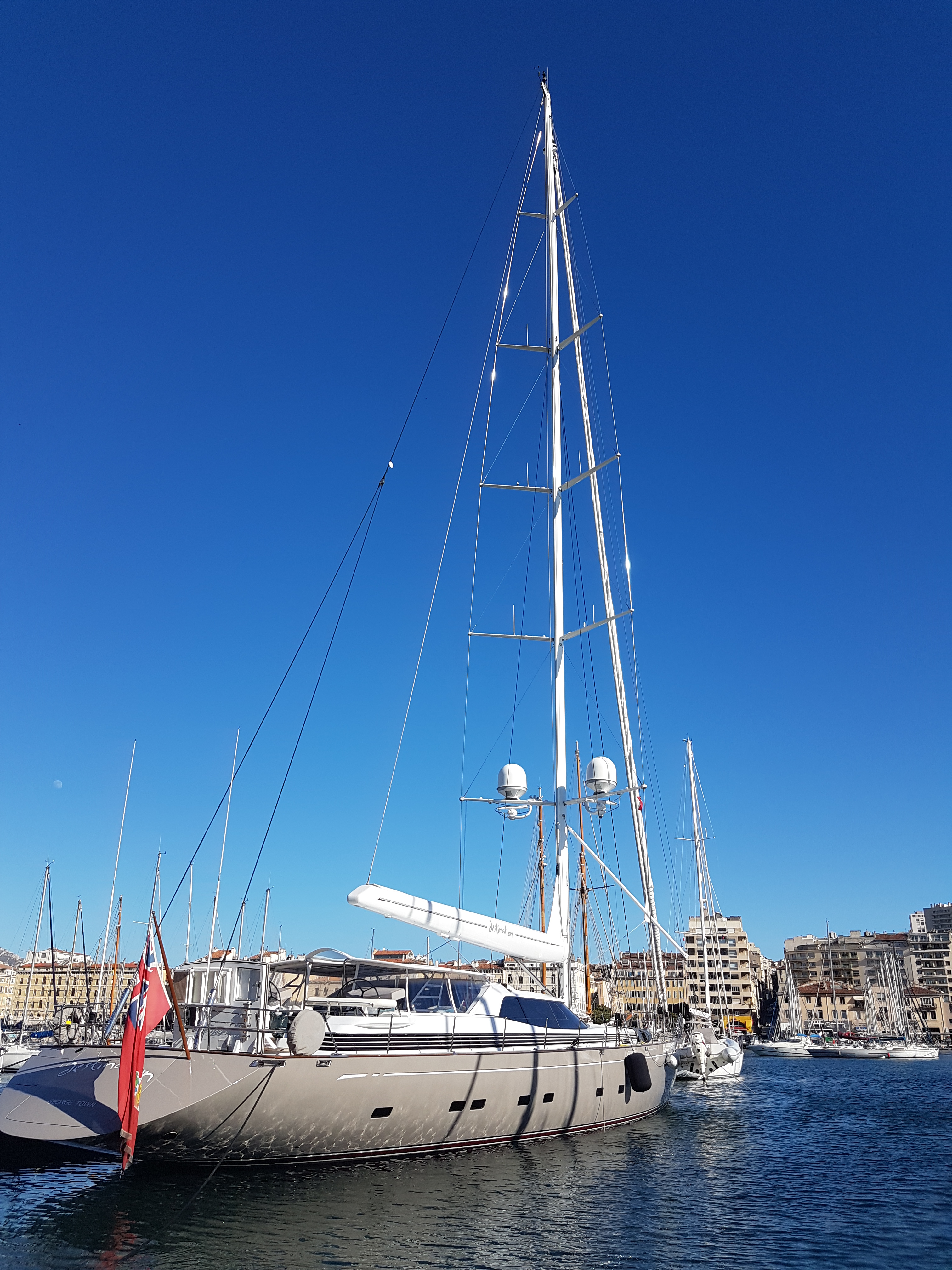 I Marseilles hamn hittade vi lite större båtar. Den här är 42m lång.